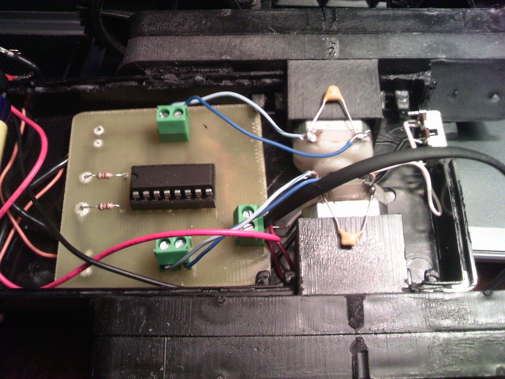 И еще возникла проблема. Батарейки Крона хватает на минуты 2 работы робота,после чего он перестает реагировать на окружающую действительность. Неужто в кронах такая маленькая ёмкость? Но есть и положительный момент - крона идеально влазит в корпус БП.