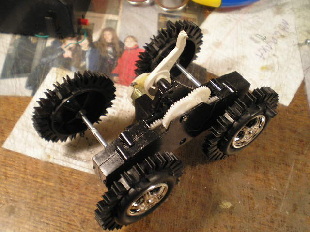 От сюда уже удалены лишние 2 шестерёнки, которые не имели никакого отношения к колёсам - они просто дулом качали.