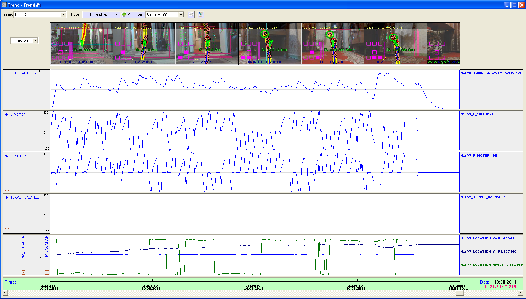 Теперь отлаживать алгоритмы видеообработки и управления роботом стало ещё проще, потому что модуль DVR работает подобно «чёрному» ящику, фиксируя видеоинформацию и параметры (переменные) вырабатываемые алгоритмами пользователя с дискретизацией записи 250 ms. Архив пишется по кольцу с продолжительностью от 1 до 12 месяцев.