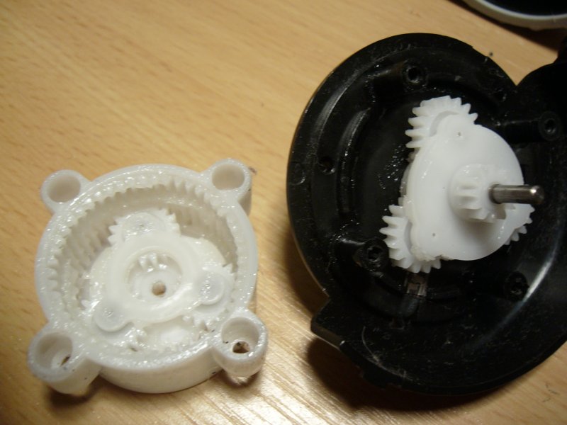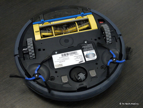 Tchibo (Tchibot?) Источник. Интересное решение узла колес - менее шумный пассик на первой передаче и более шумная, но мощная планетарка дальше. Щетка - типа ершика, как на моем пототипе №1 Радиальная щетка тоже довольно простецки выглядит. Подруливающее колесо с подвеской довольно загадочной формы. Цена в $110 оправдывает всю эту простоту реализации.