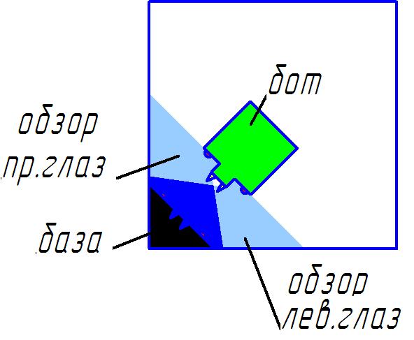 ). Алгоритм прост: видим ИК СД базы левым глазом, а правым нет - поворачиваем влево пока не увидим ИК СД обоими "глазами"; видим ИК СД базы правым "глазом", а левым нет - поворачиваем вправо пока не увидим ИК СД обоими "глазами"; видим ИК СД базы обоими "глазами" - едем прямо