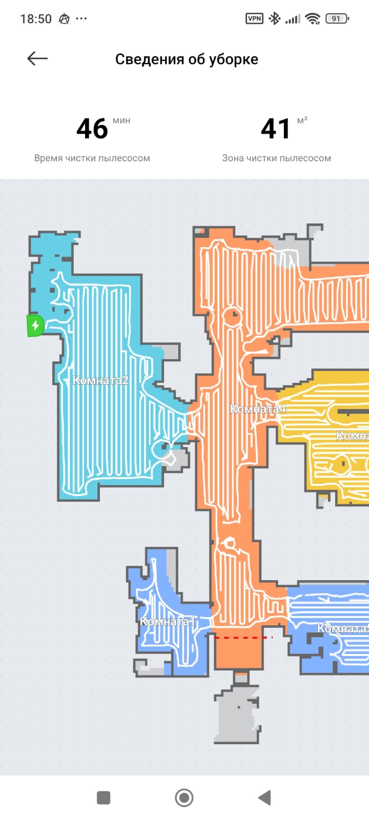 После уборки он не смог сам вернуться на базу, буквально не покинул зону 50 х 50 см. (Ездил взад - вперёд, крутился тыкался туда - сюда...). Я переключил режим со влажной уборки на пылесос и он чётко поехал на базу.