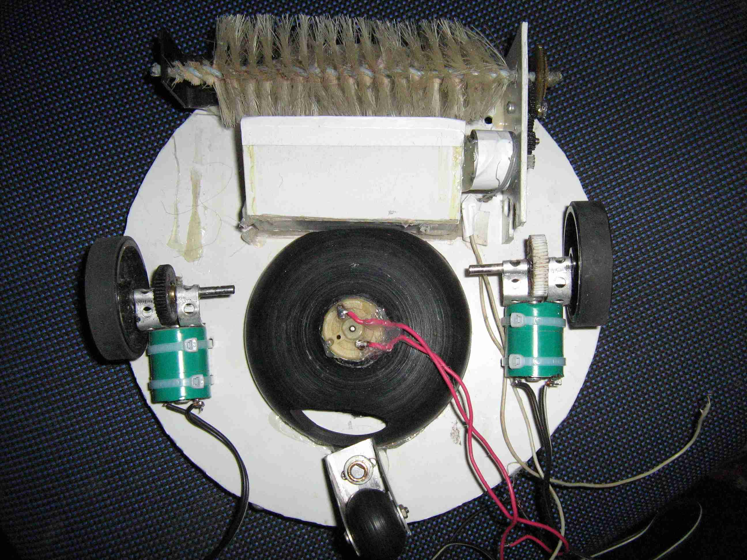 Он нормально работает, лично проверил. А щетки сделать как на фото, и чтоб на них не ставить моторов. Эти щетки будут одновременно и опорными колесами, то есть два колеса по бокам ведущие, а спереди и сзади катается на щетках (по ровному полу, или придумывать амортизаторы для щеток). Посередине конструкции пылесос. Форма или круглая, или 8-ми угольная (технологичнее для производства на коленке). Радиальная щетка пока не планируется. Электронику пока не разрабатывал, сперва надо сделать подметально-сосущую часть.