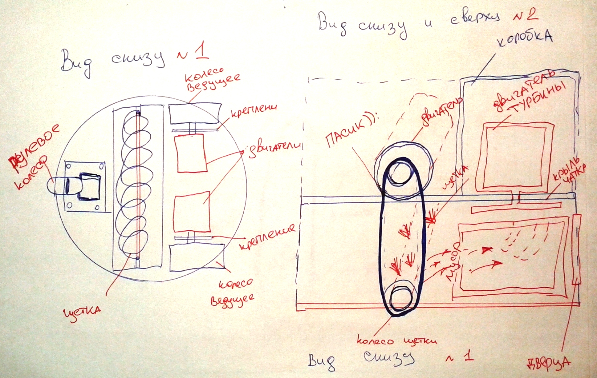 Может быть турбина и не нужна. эта щетка очень хорошо убирает без турбины, проверено. И шуметь ничего не будет!Вот как я представляю корпус: Диаметр корпуса 35-38см, думаю наверное большой все таки, Чтобы изменить размер надо как то переделать щетку с креплением и контейнером.