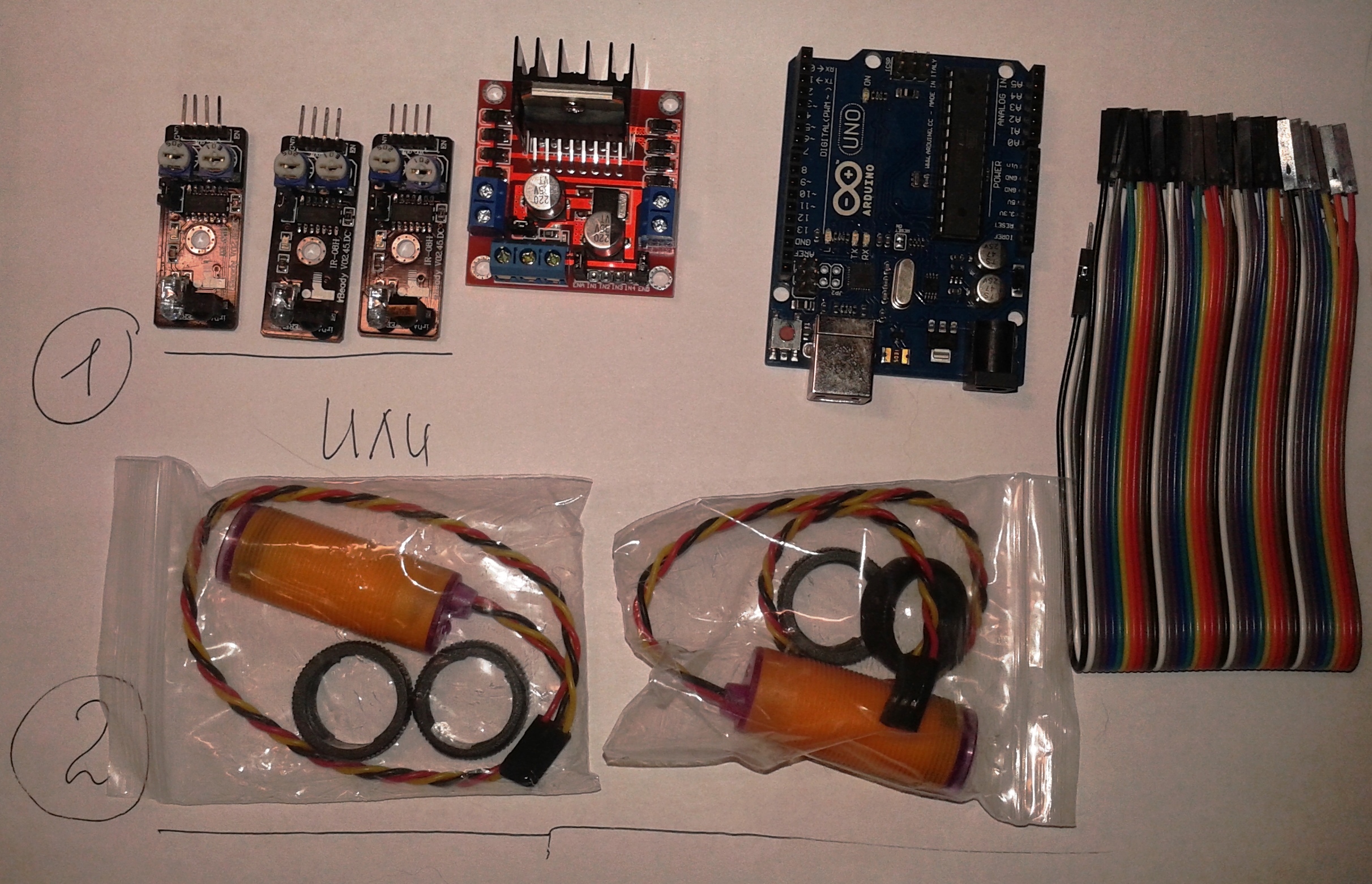 Щас уже речь не об этом, Осталось 2 дня. На сборку настройку и оформление. Главное чтобы он ездил. Щас всё подключил, попробовал управлять одним двигателем, все получилось. Теперь нужно с ик датчиками и 2 двигателя, и программу написать))