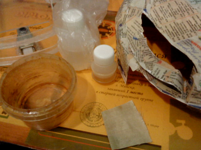 Этап 2 : Руки в клеюНарезаем , ранее приготовленную газетную бумагу на полосочки и квадратики . Мнем , и главное не читайте эту газету , а то жалко станет