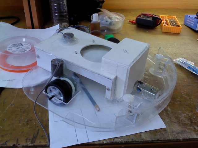 так вот дальше, я написал небольшую прогу и проверил часто ли попадает робот на базу. Поставил базу виртуально, запустил...робот произвольно блуждает. Так вот комната 6*4 метра скорость робота 15-20 см в сек...