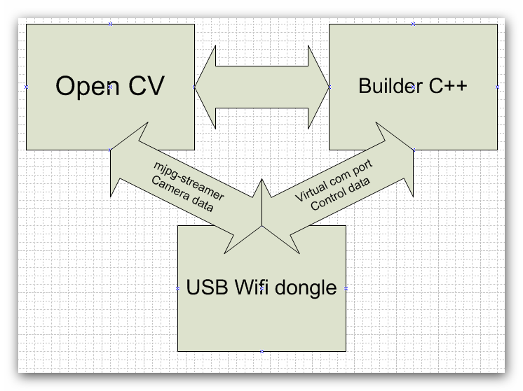 Камера подключается непосредственно к миньке, да и скорости com порта явно не достаточно для передачи изображения. Я решил использовать mjpg-streamer, которая граббит изображение с камеры и формирует виртуальную web страницу, которую опять же по сети можно открыть с компа. И, а это пока не решено, грабить библиотекой OpenCV. У кого-нибудь опыт в подобном есть?