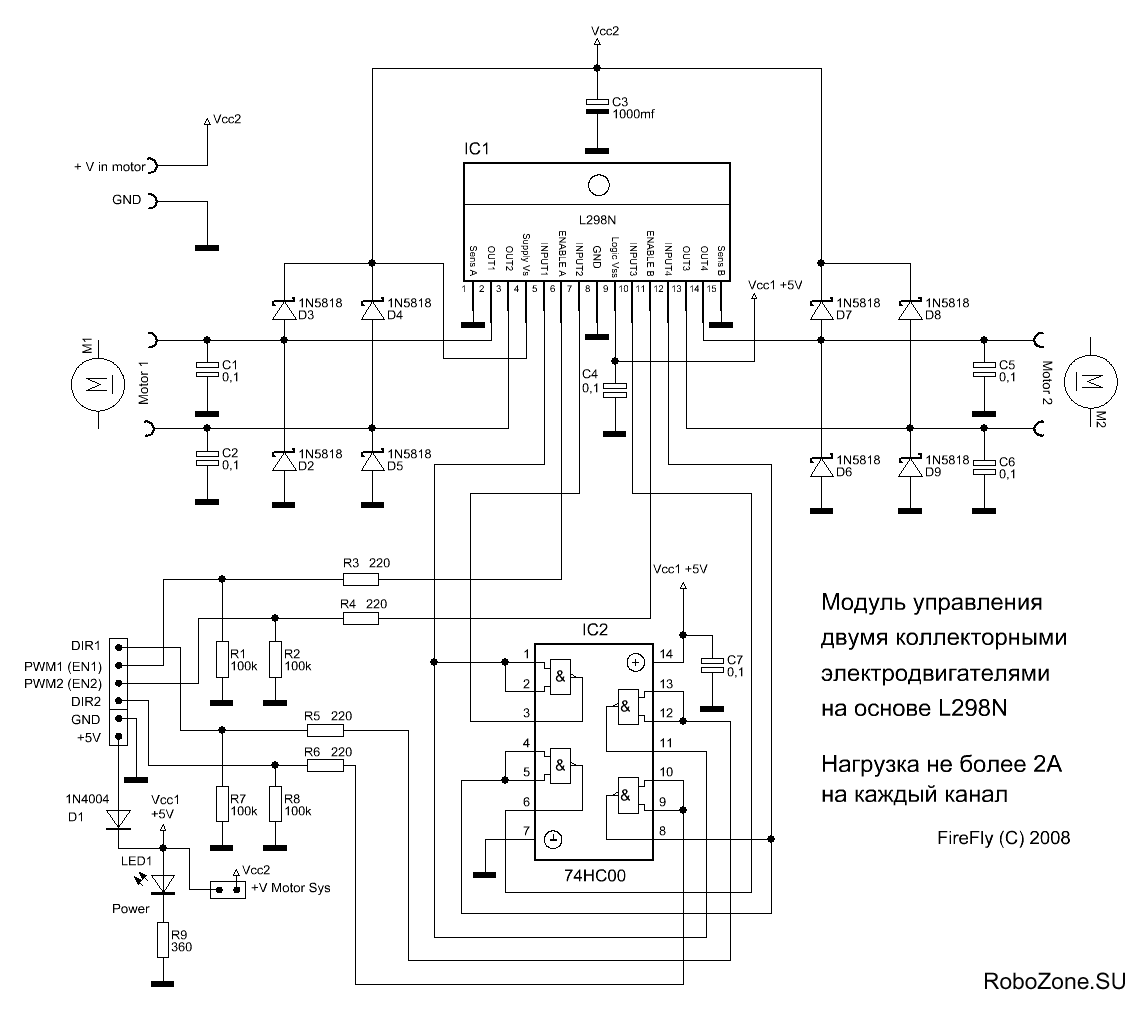Сама схема взята от сюда http://robozone.su/2008/04/16/modul-upravlenija-jelektrodvigateljami.html. За что им огромное спасибо.