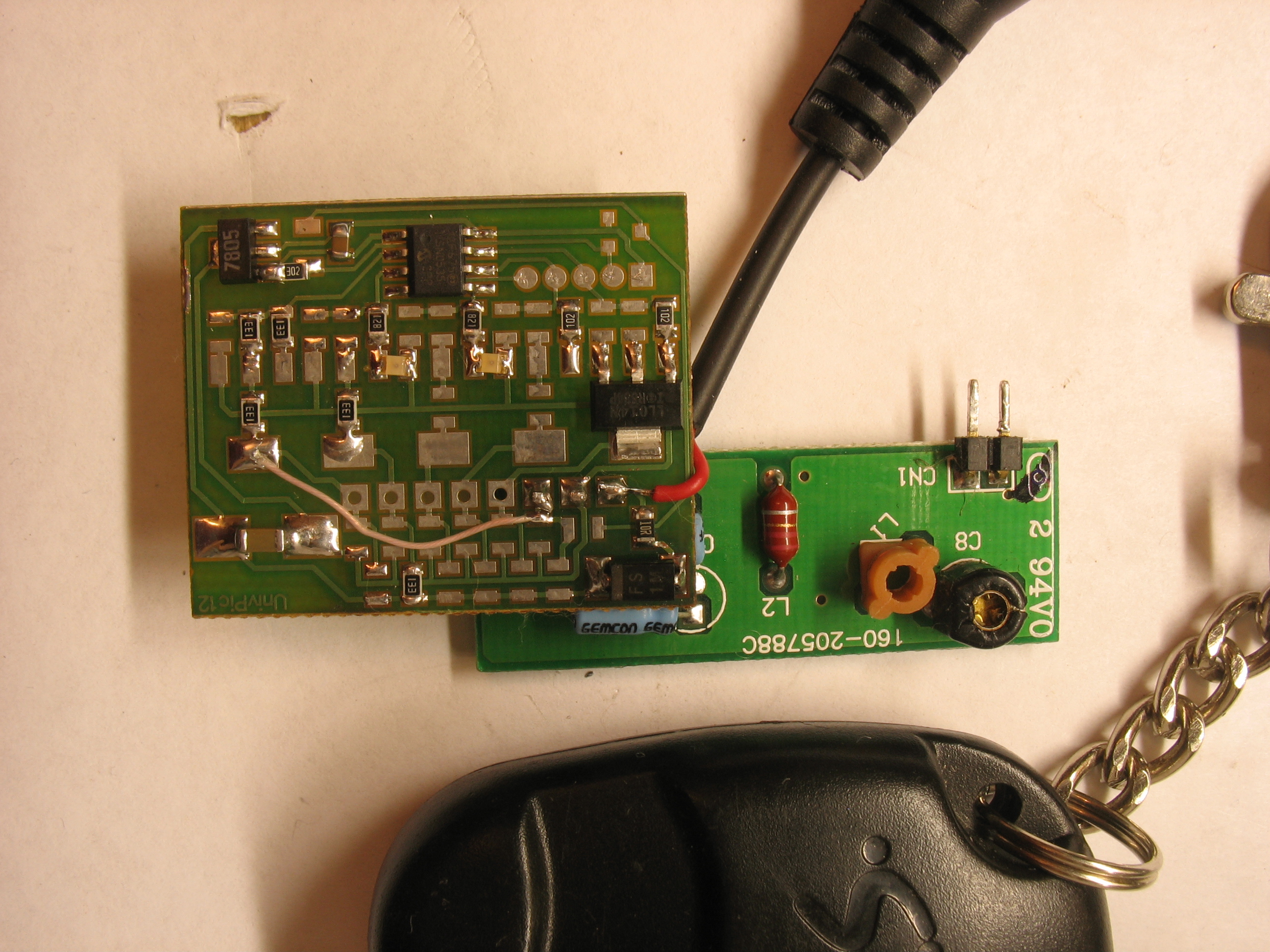 У большинства брелков контакты программирования выведены площадками. Брелок A.P.S не зафоткал, а SPAL вот: