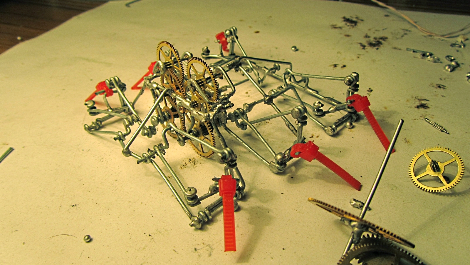 Комментарий к файлу: Вначале думал сваять задние ноги навроде Таракашки - чтоб отличались по конструкции от остальных. Для пущей насекомости. Поэтому рама вышла такая вот сумбурная - много лишнего и несуразного. По ходу лепки стало понятно, что в концу наберётся жуткий вес и непроходимая гора чермета... От Красивых заних ног пришлось отказаться в пользу хоть какой-то простоты конструкции. 13.JPG [ 1.9 МиБ | Просмотров: 21013 ]
