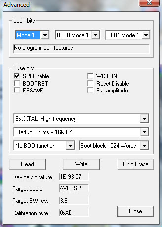 Или может я фьюзы разучился в меге выставлять через AvrProg...