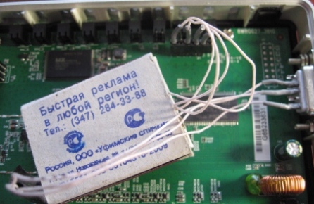 Все просто. Монтажная платка представляет собой кусок текстолита с лужеными отверстиями с шагом 2,54 мм. По схеме в приведенной ссылке прикидываем расположение деталей, втыкаем в платку микросхему (для первого раза это надежней делать через панель для микросхемы), кондеры, провода и все припаиваем к отверстиям, в которых находятся воткнутые ножки/провода. Потом нужные между собой соединения выполняем медной проволокой (из куска кабеля витой пары) и пропаиваем её к отверстиям и деталям. Но. Будьте внимательны, я, например, один из кондеров соединил с «землей» насквозь обе ножки. Причем, первоначально я для платки нашел такое место – приклеил ее на крышку роутера клеем «Момент», он типа как резиновый. Получилось симпотно, вывел провода наружу и припаял к ним DB-9 «папу». Но COM-порт не заработал, я перерыл весь интернет и выучил наизусть даташит на эту микруху. Обтыкал ее мультиметром, так вот там есть такой «charging pump», и на нем д.б. напряжение 5,5 вольт. А у меня было нативные 3,3 вольт на нем. Смысл всей этой микросхемы в том, что она слабый сигнал платки (TTL сигнал) поднимает при помощи зарядного насоса до приемлемого с точки зрения стандарта RS-232 уровня (5,5 в достаточно) и входящий сигнал (12 или 9 вольт) спускает на свой уровень (3,3 вольта). Так вот, поскольку этот разгон у меня не работал, то исходящего сигнала не было. В общем, потом я решился отодрать платку от крышки роутера и проверить схему. И обнаружил этот косяк с конденсатором. Аллилуйя. Заодно поменял «папу» разъема на «маму», платку положил в спичечный коробок (сам прижимается) и вообще приделал разъем к корпусу, вот так: