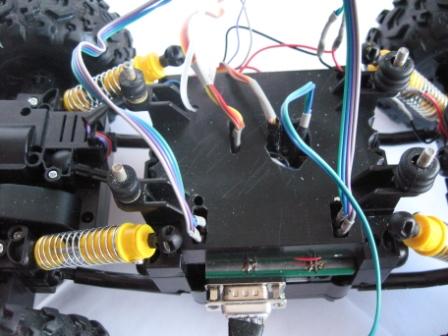Предполагается, что к этому моменту у нас все отдельные элементы цепи собраны (драйвер моторов, стабилизатор питания, светодиоды). Приведу свою последовательность, хотя понятно, что много зависит от конкретного автомобильчика. Итак: Установка Freeduino на два болтика в удобное место:
