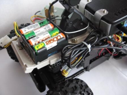 Раздельные цепи. Питание полностью раздельное – роутер и Freeduino на одном источнике (8 шт аккумов по 1,2в = 9,6в), моторы – на 6 шт.батарей 1,5 в. (9в). У Джо все вместе, но там и вольтаж больше. Мне же показалось, что такая схема более удобна, да и роутер капризен к стабильности питания – бросок вниз из-за блокировки всех движков его может легко подвергнуть перезагрузке. Кроме того, если бы все это было в одной цепи, то роутер отказался бы запускаться при напряжении в ней ниже 7,5 в (подробнее об этом ниже), а моторы работать еще могут. Т.е. из-за приколов с энергопотреблением роутера пришлось бы менять еще вполне рабочие батарейки.