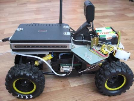 К CUBLOCу по COM-порту прицеплен крошечный веб-сервер MaxPort, а уже разъем веб-сервера прицеплен к роутеру. Т.о. с точки зрения роутера вся эта связка (CUBLOC+MAXPORT) представляет собой компьютер с IP, или по-другому – CUBLOC имеет свой IP. При такой архитектуре проще коммуницировать с микропроцессором, т.к. роутер будет заниматься тем, для чего его изготовили и не нужно с ним извращаться. Однако, веб-сервер типа MaxPorta стоит 70-110 usd. Сам CUBLOC – баксов 30-45, еще к нему нужна базовая плата и плата управления движками (еще баксов 100). Проект Дэвида Шелато получается дороговатым. Но мне кажется, что это самый простой путь для новичка и самый изящный. Больше готовых компонентов, меньше сложного программирования и пайки. Кстати, сам проект CUBLOC, несмотря на внешние прелести, видимо не особо популярен в штатах, например, на сайте кьюблока присутствуют фото с сайта Шелато, его автомобильчика, построенного на базе CUBLOCа, что видимо должно подчеркнуть юзабельность продукта, но подчеркивает лишь то, что такой частный проект с CUBLOC – один. Что касается камеры, в проекте она также IP, т.е. со встроенным сервером. Как и говорилось, соединив все это (микропроцессор, камеру) к роутеру, дальше остается организовать доступ к самому роутеру, и все. Б) Вот где оказалась собака порыта! (с) Многие роутеры работают под управлением операционных систем основанных на линуксе. Это дало почву для развития альтернативных прошивок, в результате заливки которой роутер мало чем отличается от настоящего компа с ОС Линукс, но разумеется, маломощного (проц все-таки 200-300 Мгц). Это дает возможность, использовать роутер не по назначению, а по фантазии. После обязательных танцев с бубном, всякие продвинутые чуваки цепляют к ним торренто-качалки/раздавалки, 3G модемы, хранилища данных, видеокамеры и еще чего-то. В отношении проекта WiFiавторобота это дает отличную возможность удешевить робота – ибо как к компу можно цеплять по COM-порту и USB порту все, что душе угодно, так и здесь – не надо огород городить с подключением к роутеру только IP Устройств, можно подключать по имеющимся физическим портам. При этом роутер тоже внешне используется как точка доступа, но помимо точки доступа предоставляет функционал компьютера. Самым документированным и полезным проектом, основанном на таком подходе, найденным мной в инете является - Wifi Robot - JBProjects.net. В этом проекте в роутере используется прошивка OpenWRT, как я говорил, это - одна из разновидностей Линукса для встраиваемых, компактных систем. Кстати, в комментах к проекту часто встречается «great tutorial», так и есть – это великолепное пособие для начинающих, несмотря на возраст автора – 23 года, студент (в 2008 г). Внимательно изучив проект, я решил делать свой на его основе. Был еще один подобный, но там автор микропроцессорную часть построил аж на 2х PICах (микропроцессоры такие) с использованием протокола I2C. «Ужос» - решил я, и закрыл ту страницу, потеряв ее навсегда. Закончив на этом исследования предмета, далее начнем собирать автомобильчик, имея под рукой руководство Джонатана.